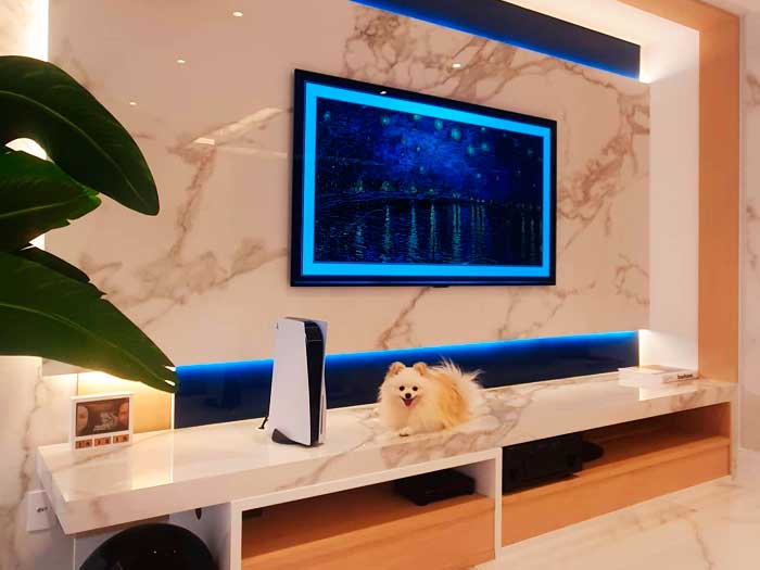 Projetos de bancadas, de paginações de pisos em pedras, de painéis de Tvs em lâminas tecnológicas e outros materiais, tudo isto com uma expertise exclusiva de uma empresa que sabe executar com perfeição os projetos de todos os tipos de complexidade, como é o caso da Gran Ramos, unidas à mente criativa dos arquitetos parceiros, como o arquiteto Paulo Perrucci que realiza em seus projetos de interiores de apartamentos aos seus clientes as soluções mais modernas e únicas!